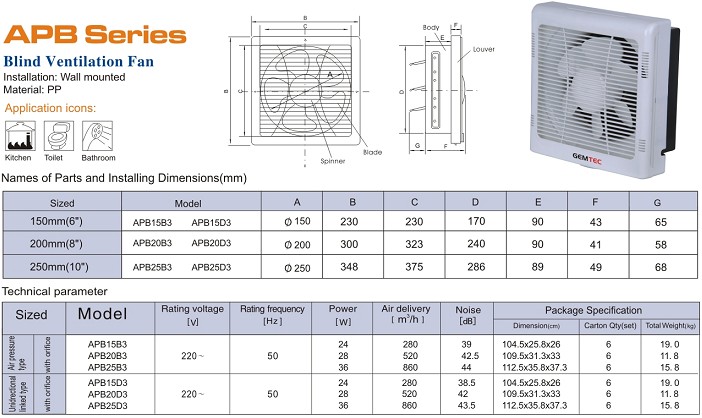 百葉窗式換氣扇(全塑)